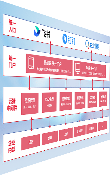 对协作平台提供支持服务,,,,支持企业应用与协作平台对接,,包含组织同步、、消息集成、、、待办集成等。。支持目前主流的协作平台:钉钉、、、企微和飞书。。